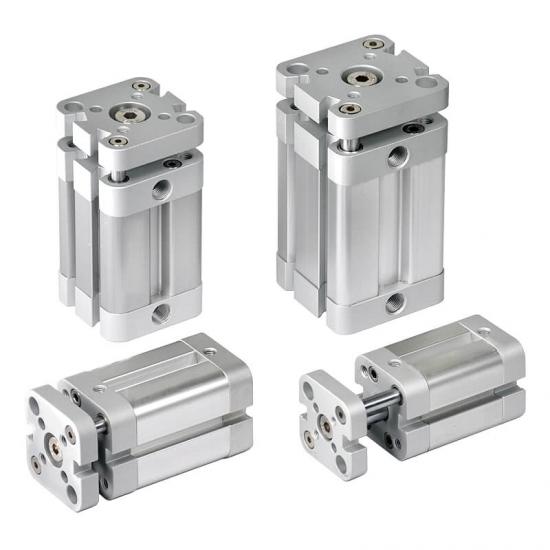 經空氣推動使活塞桿產生拉、推功能,並經由雙導桿作用可得到精確之操作。