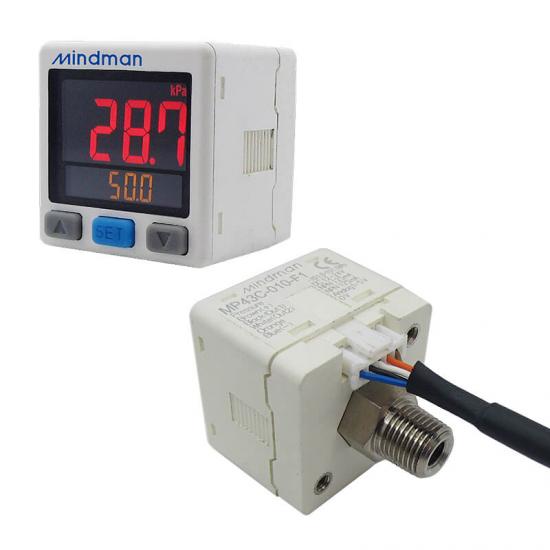 7 種壓力單位顯示。2 NPN/PNP 開集極輸出 + 類比輸出。3 色數位LCD顯示。重複精度 ±0.2% F.S.±1 digit。節省電力 Max. 20%。