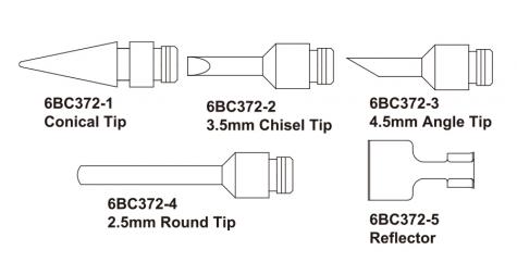 瓦斯烙鐵組含四個烙鐵頭, 擋風氣罩與錫絲