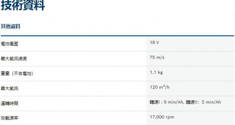 吹風機在18 V類別產品中具備快速清理功能 可產生270 km/h的強勁風速,清潔區域時可獲得良好效果 採用精巧而平衡的設計,能輕鬆操作吹風機,並提升控制力 整理工作現場並清潔鑽孔 具備靈活的四個配件