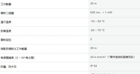 45°的額外輔助光束讓磁磚鋪設更快速 除了呈90°角的兩道雷射光束外,其可再投射第三道45°光束可精確且快速的對齊與鋪設牆壁與地面的磁磚 0.2 mm/m的高精確度 小巧且輕量化設計讓使用更輕鬆