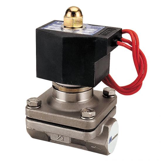 2口2位膜片式電磁閥 (常閉),大流量系列,不銹鋼#316 閥體(CF8M),配管口徑:Rc1/2"~2",適用流體:水,空氣、瓦斯、輕油、真空。