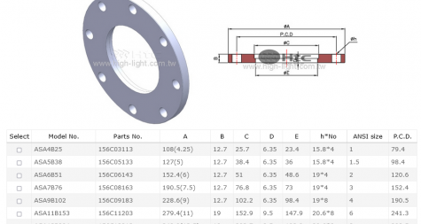 ANSI ASA 真空法蘭系列提供盲板法蘭或有O型環槽法蘭, 材質為304不鏽鋼. ANSI ASA 真空法蘭提供齊全管件配件尺寸從 1” 到 12” .