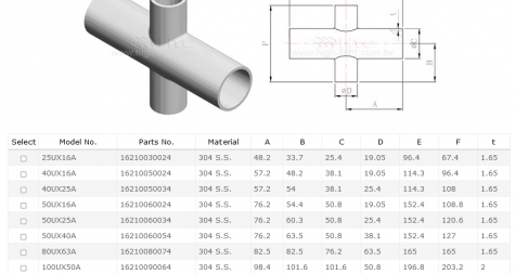 適用於半導體製程設備管線配線、大型管路以及PUMP排氣線路之真空四通管 Crosses管線