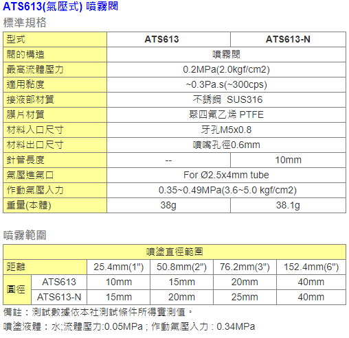 KGN 噴霧閥可應用於點膠控制器與壓送容器(膠管、容器桶…等);極精密的噴霧控制,利用控制元件調節流體 壓力和噴嘴頭壓力,使其更精確、一致且均勻噴塗低黏度流體,所噴塗的圓形直徑範圍10~40mm。體積小,可安裝 多組噴霧閥,亦適用於狹小空間。