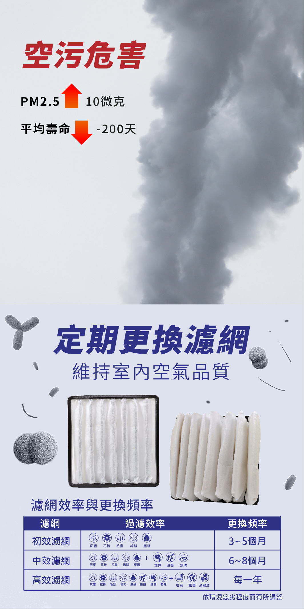 使用於一般外氣進風處的第一道濾網,不可重覆使用。