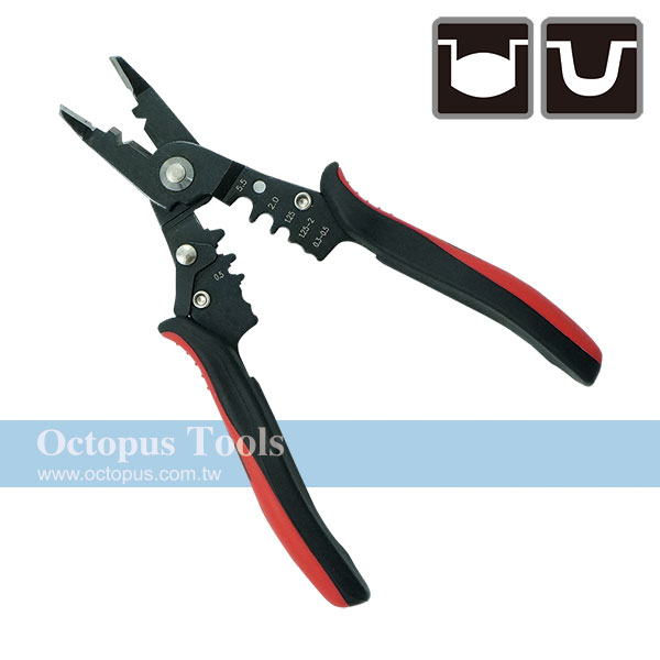 功能:可當作斜口鉗、剝線鉗、剪線鉗、壓接鉗、拉線鉗五合一。