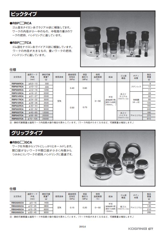 ● 使橡膠膨脹並夾住工件外徑的夾子類型。備有夾住內徑的鎬型。