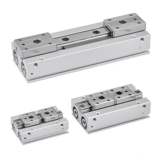 氣缸內徑: φ 8, 12, 16, 20 (mm) 二爪平行作動。 線性滾珠導軌設計,高精度、高剛性,長使用壽命。 不銹鋼材質夾爪組。 薄型本體設計,節省安裝空間。 雙活塞結構提供較大的夾持力。 本體及夾爪加裝定位插銷孔,使固定位置重現性提昇。 全系列均附磁。