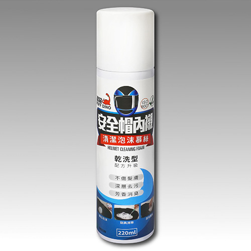 恐龍安全帽內襯泡沫清潔慕絲,針對織物清潔而設計,高科技特殊泡沫,快速溶解依附在織物表面的髒污。