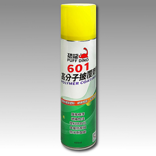 恐龍601高分子披覆劑具有防水撥水、耐高溫、防腐蝕、電氣絕緣、粉體處理等功能。可於室溫自然硬化,在物體表面形成透明且高硬度的膜層。使用簡易,適用於大部份的金屬、木材、陶瓷、塑膠及壓克力等材質上。