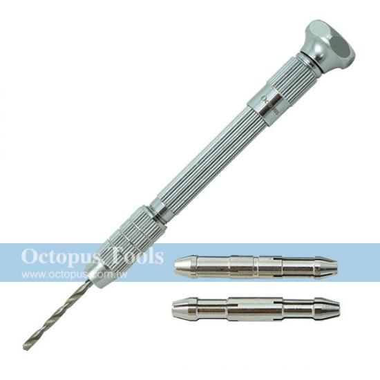 旋轉頭: 15mm 全長: 95mm 前端頭徑: 10mm 握把柄徑: 8mm 夾頭能力:共4種夾頭 0.3mm ~ 1.0mm 1.0mm ~ 1.7mm 1.7mm ~ 2.4mm 2.4mm ~ 3.2mm 配件: 附鑽頭一支