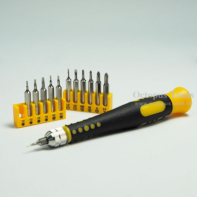 ◆ 雙色可替換式防滑手柄,可搭配12款精密起子頭使用。
