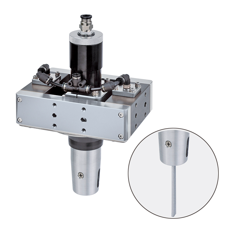 機械手臂專用去毛邊工具,角度浮動,應用於直線作動,去除直線小毛邊、窄槽、凹槽等細緻特徵。 適用於壓鑄工件。