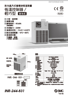 ● 小型・省空間 ● 無需冷媒 ● 靜音設計:45dBA(選配選擇時) ● 冷卻能力:220W ● 溫度安定性:±0.01~0.03℃ ● 設定溫度範圍:10℃~60℃ ● 接液部材質:不鏽鋼、樹脂(不使用鋁、銅系材質)