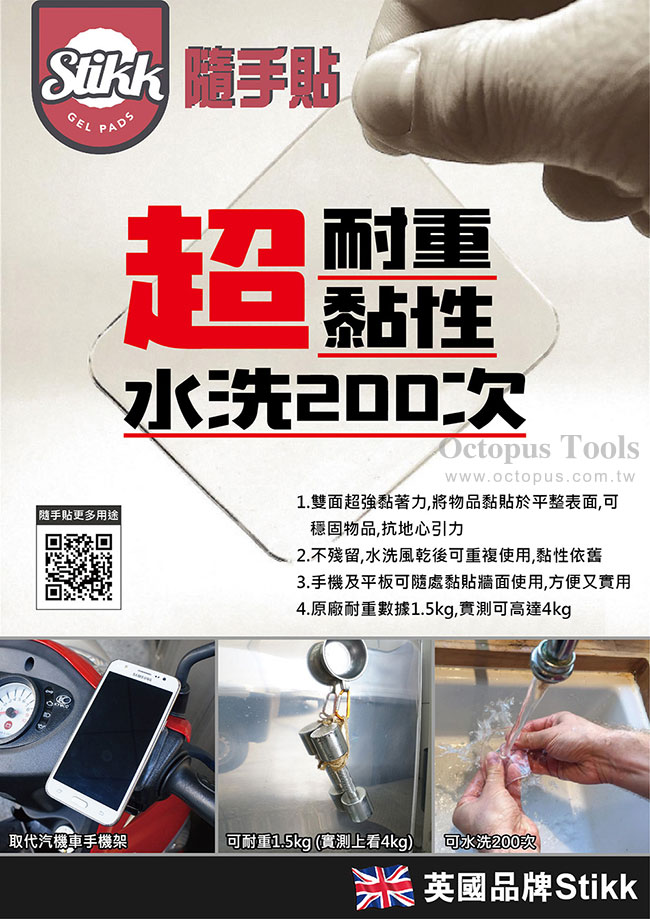 ◆ 不留殘膠,水洗風乾後可重複使用200次以上。