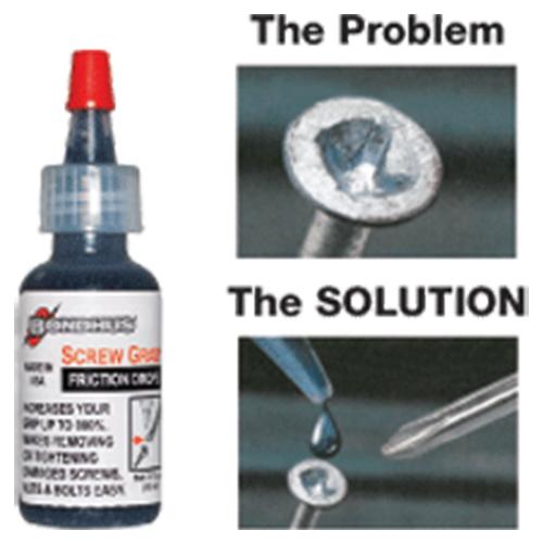 輕輕一抹 SCREW GRAB® 即可在金屬表面之間產生積極的抓握(測試顯示高達 800%),幾乎消除了工具磨損或緊固件的倒圓和變形。
