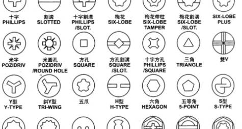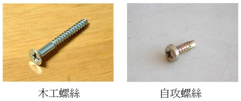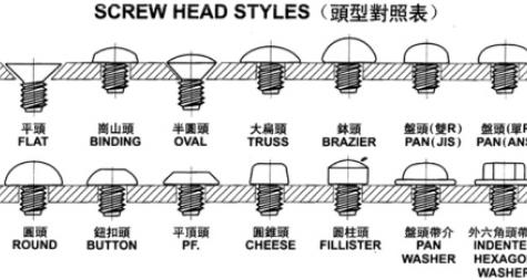 二. 常用螺絲種類: A: Machine Screw: 機械螺絲 B: Tapping Screw: 自攻螺絲 (分使用於金屬與使用於塑膠二種) B-1: Sheet Metal Tapping Screw. (鐵板牙自攻螺絲) B-2: Plastic Tapping Screw. ( 塑膠用, 自攻螺絲) C: Wooden Screw : 木工螺絲 D: Drywall Screw : 水泥墻螺絲