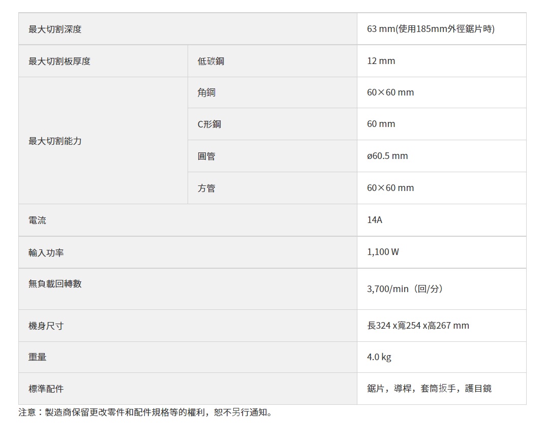 1.鋸片直徑180 mm / 185 mm