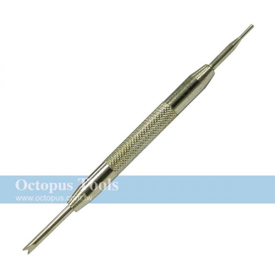 ◆ 利用小巧錶耳叉尖端,將錶帶錶殼端彈簧棒卸下,更換錶帶後再依此方式將錶帶扣回錶殼端。