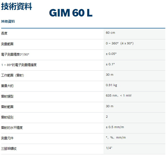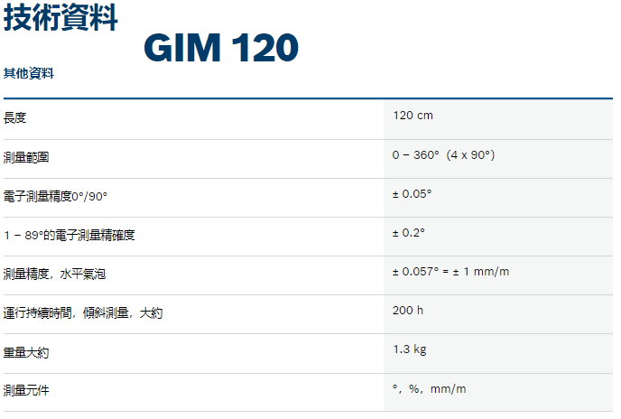 較長的測量臂更精準 可精準測量傾斜,單位設定有:度、百分比或公釐 / 公尺 0°及90°方向箭頭指示與響音指示方便調校 頂上作業時,測量數值會自動顯示在螢幕上