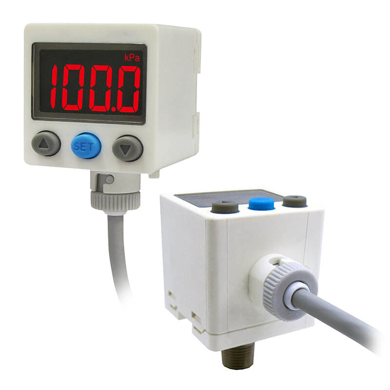 IP65 防護等級。2NPN/PNP 開集極輸出 + 類比輸出(1~5V or 4~20mA)。2色數位LCD顯示。重複精度±0.2% F.S.±1 digit 以下。