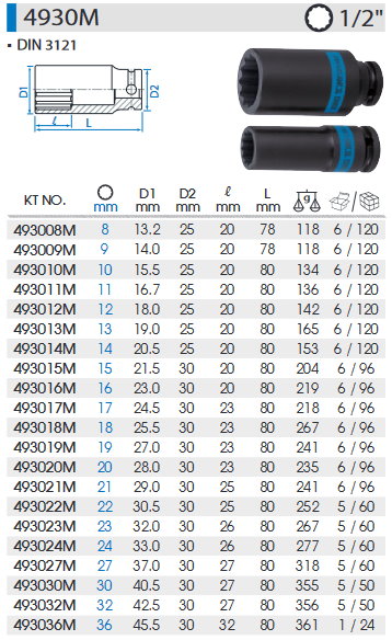 1/2 DR. 公制十二角氣動薄壁長套筒