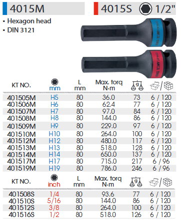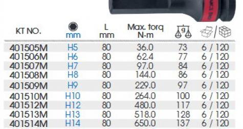 1/2 DR. 公制_英制六角氣動起子頭套筒-長頭