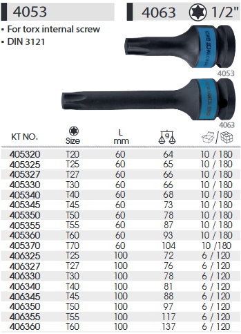 1/2 DR. 六角星型氣動起子頭套筒-100L