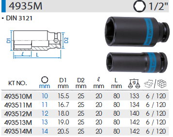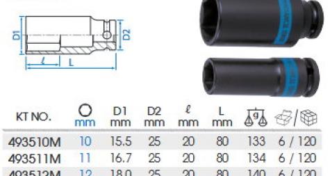 1/2DR. 公制六角氣動薄壁中長套筒