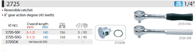 1/4 DR. 45齒歐式微調棘輪扳手