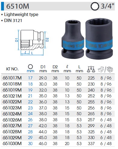 3/4 DR. 公制十二角輕量化氣動標準套筒