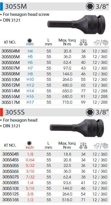 3/8 DR. 公_英制六角氣動起子頭套筒