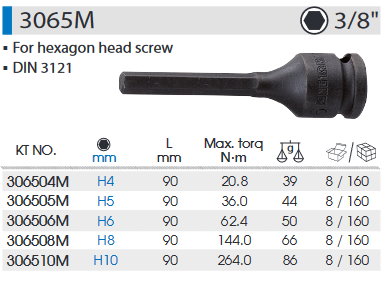 3/8DR. 公制六角氣動起子頭套筒