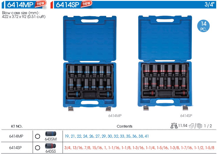 14件式 3/4DR. 氣動六角套筒組