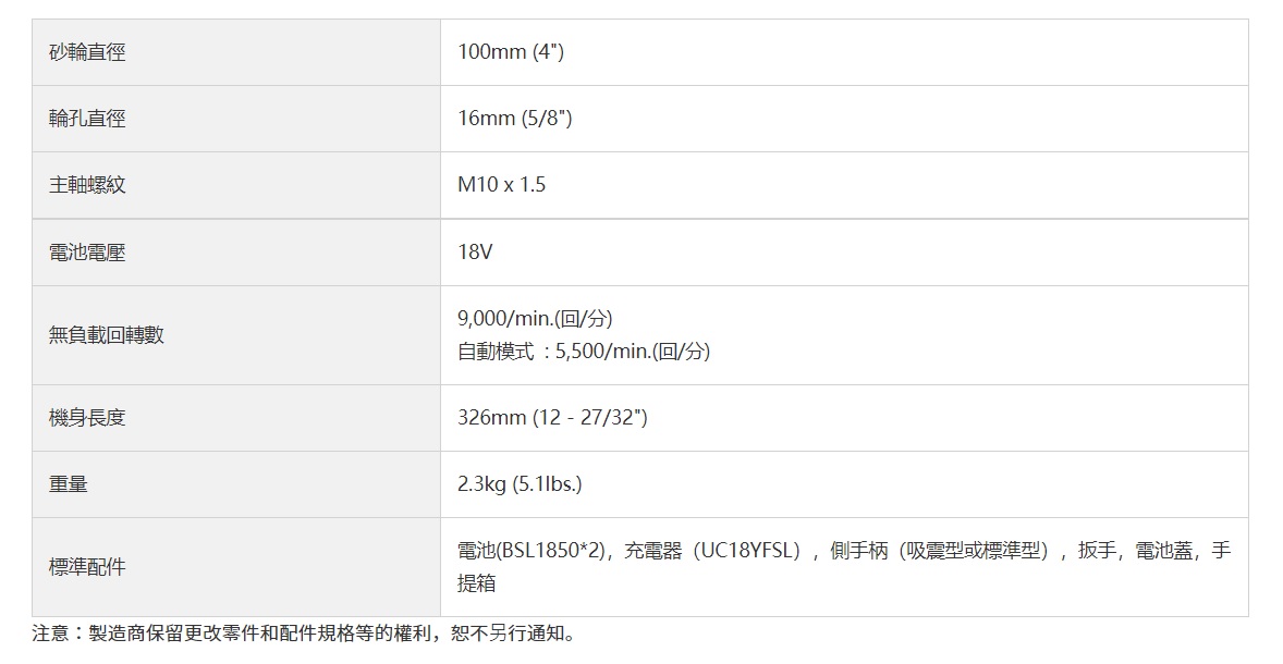18V 無刷砂輪機(滑動開關) 100mm (4") G18DBL