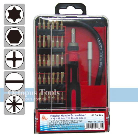 30件正逆轉棘輪起子組 附軟軸(星形、六角、十字、米字、一字)