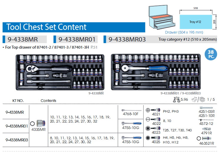 38件式 1/2DR. 工具箱組套
