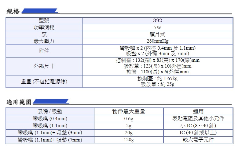 吸放筆,吸墊及軟管均使用拆消靜電材料製造,對敏感元件更安全。