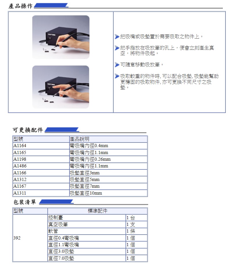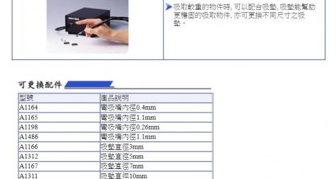 容易吸取扁平積體電路,電阻,電子零件及各類圓型,小型物件。