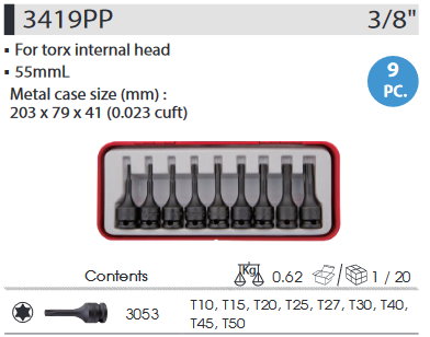 9件式 3/8 DR. 星型氣動起子頭套筒組