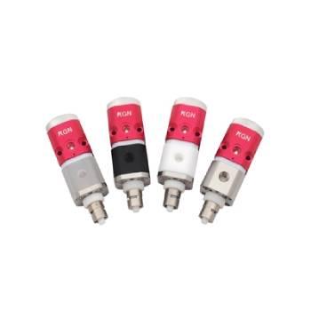 KGN 氣壓驅動隔板閥使用0.34MPa以上的空氣開啟閥,並透過閥體內藏的彈簧來關閉閥。 可應用於點膠控制器與壓送容器(膠管、壓力桶…等),還可調整材料壓力與閥的開放時間及搭配不同尺寸的針頭, 從微量吐出開始控制。特別適用於小型的自動化設備上。