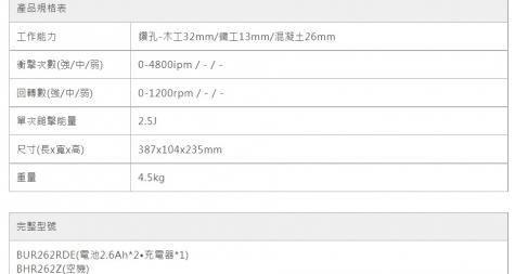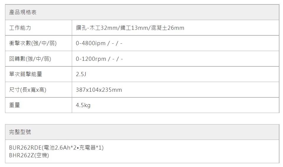 BHR262 充電式鎚鑽