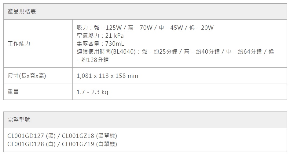 CL001G 充電式無刷吸塵器