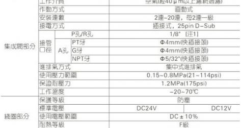 1、將電磁閥集成閥組,統一進、排氣及電源(25pinub可節省空,並減少需添購配件之數量。 2、組合靈活、擴充性強,可對所連接的電磁閥數目進行任意組合或擴充。附有盲板選配。 3、電磁閥附手動開關功能,利於安裝整。 4、啟動電壓低,使用壽命長。