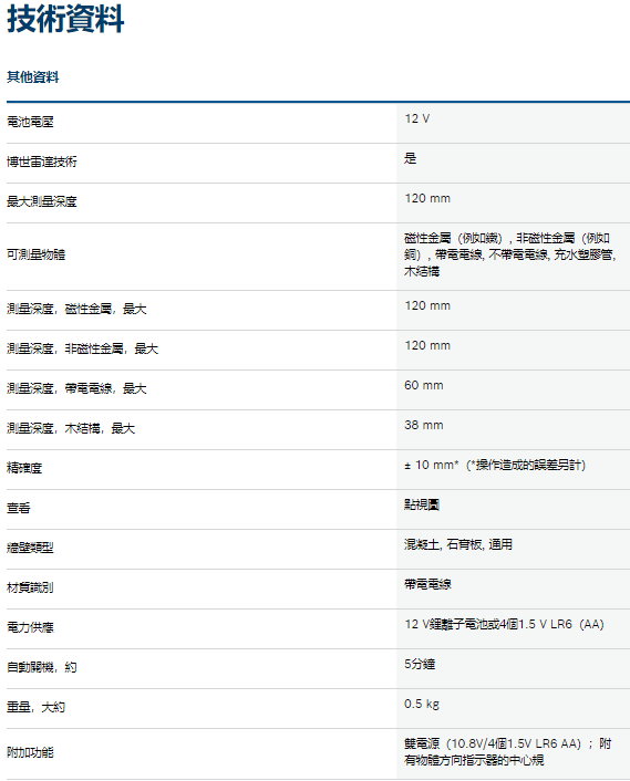 適用於幾乎所有材質的直覺式雷達探測儀 點測量可在狹窄的表面上提供精確的探測結果 中心規提供了視覺導引,可清楚地識別物體中心的精確位置 雙電源設計,可使用12 V鋰離子電池或標準鹼性電池