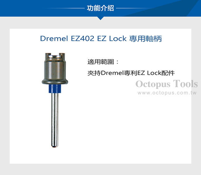 ◆ EZ402軸柄是Dremel獨家的EZ Lock配件。