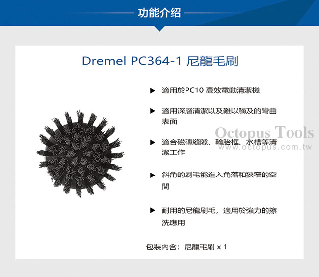 ◆ 耐用的尼龍刷毛,適用於強力的擦洗應用。