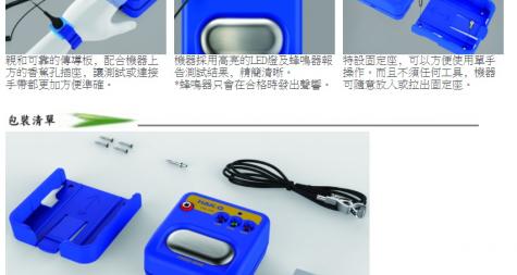 機器採用高亮的LED燈及蜂鳴器報告測試結果。