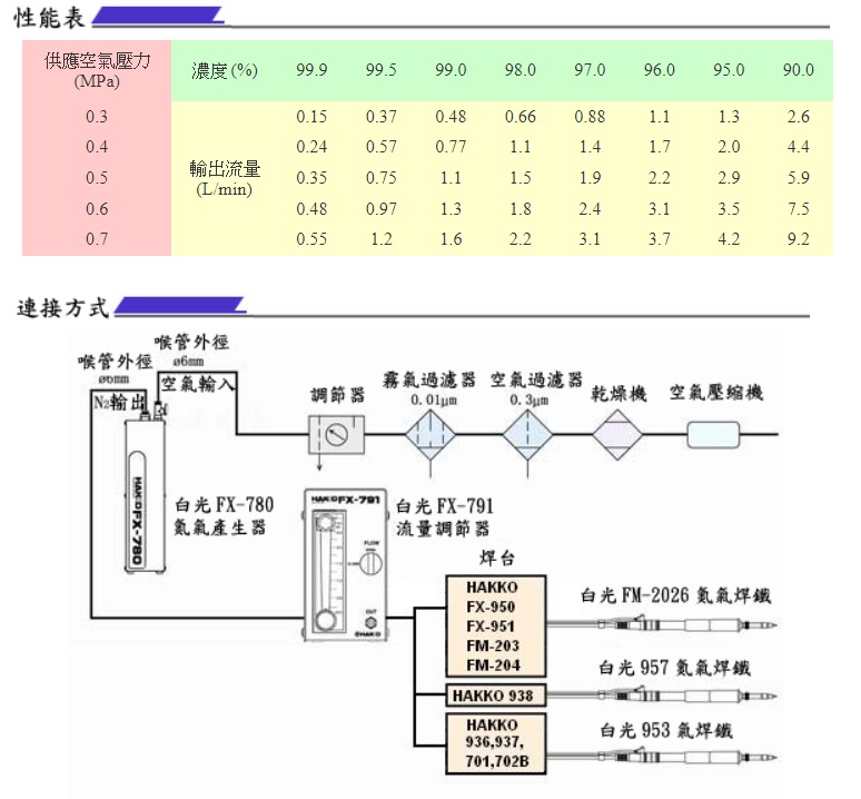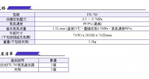 白光FX-780提供最高濃度氮氣達99.9%,其外型輕巧,節省工作空間,而且可以垂直或水準放置。